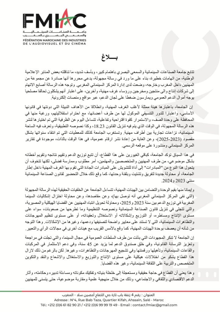 الرئيسية » جامعة الصناعات السينمائية تحذر من تداعيات رسالة مجهولة وتدعو لحماية مسار إصلاح القطاع